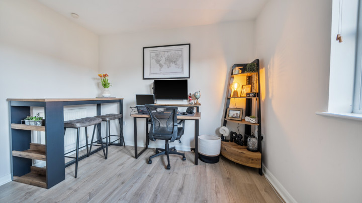- Loft space plus built-in storage cupboards