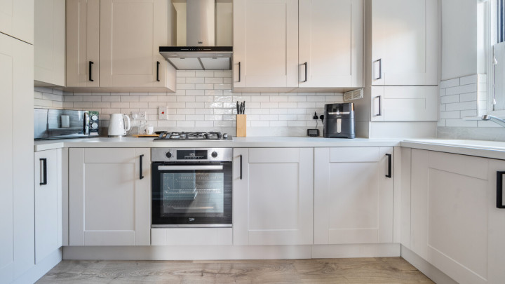- Modern kitchen with oven, gas hob & extractor