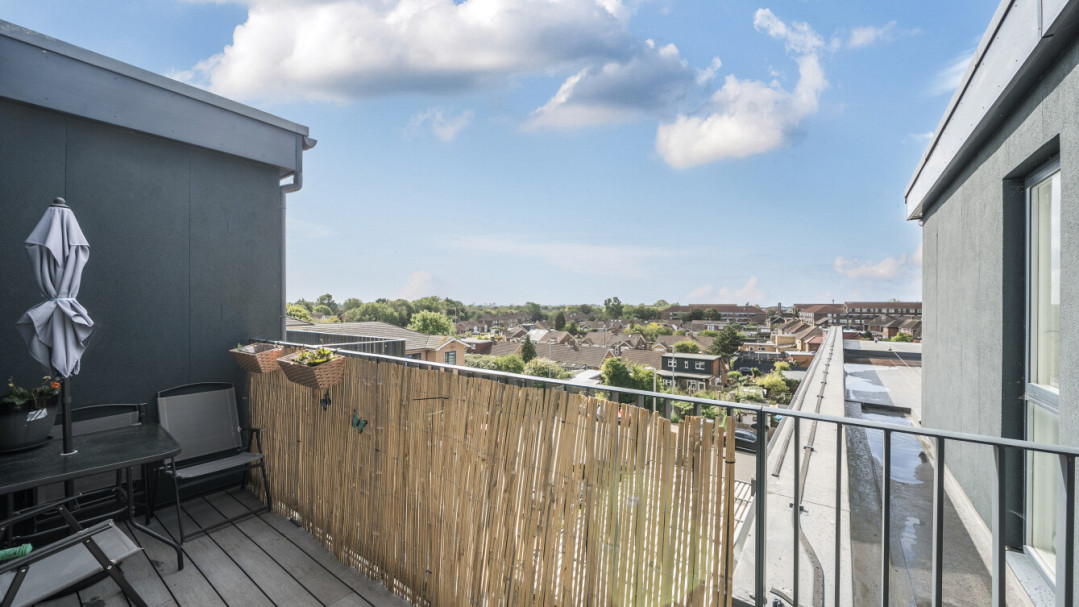 The flat boasts a modern bathroom with chrome fittings and a full-width mirror, alongside a bright and airy bedroom complete with built-in cupboards. Smart heating controls add to the property's efficiency, while a large private balcony offers the perfect spot to relax and unwind. Finished to a high standard, this flat is ready to move into and enjoy.