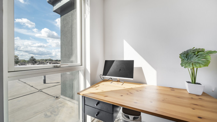 - Integrated appliances: fridge, induction hob, oven, washing machine