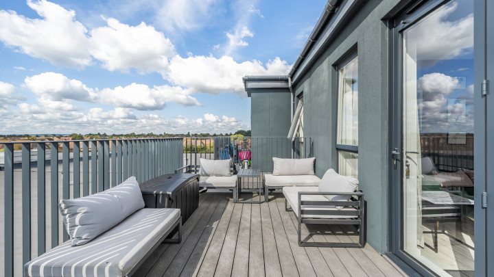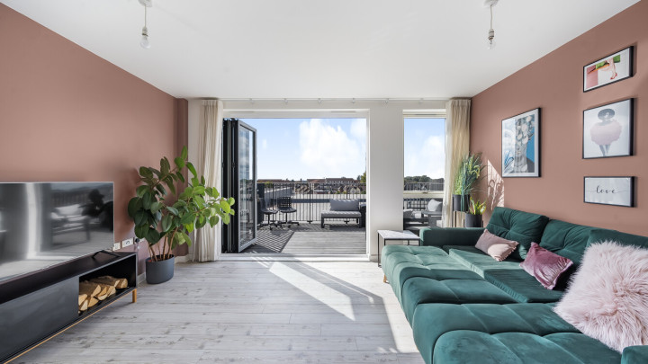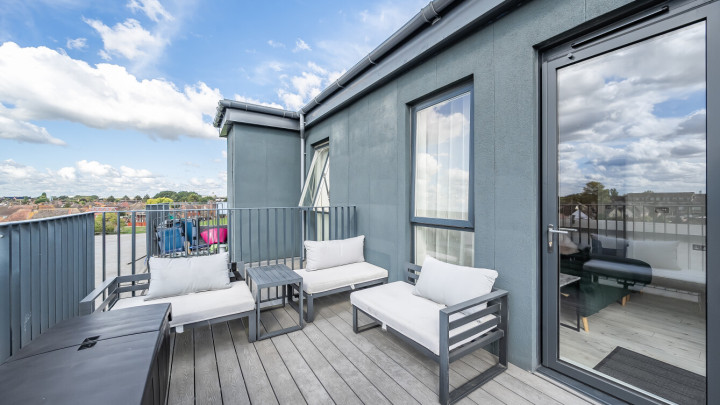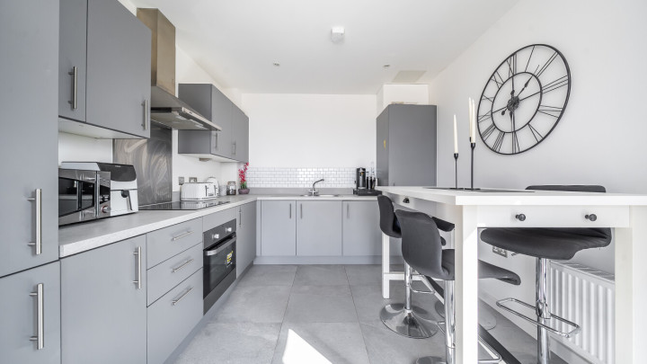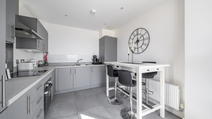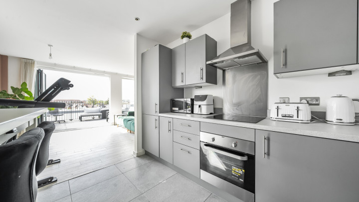 The apartment comes complete with integrated appliances including a fridge, induction hob, oven, and washing machine, making it ready to move straight into. Residents also enjoy access to a large rooftop terrace, providing the perfect space for relaxation and entertaining. Modern comforts such as gas central heating, communal lift access, and high-speed Hyperoptic broadband further enhance this property.