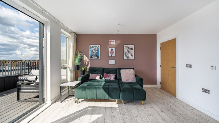 This stylish and contemporary third-floor apartment offers modern living in a highly convenient location. Built in 2019, the property benefits from an open-plan layout with a bright living room and kitchen, a well-proportioned double bedroom, a sleek bathroom, and an additional storage room.