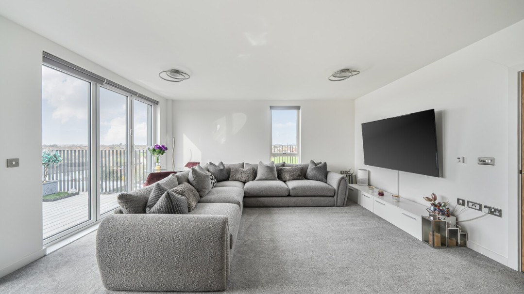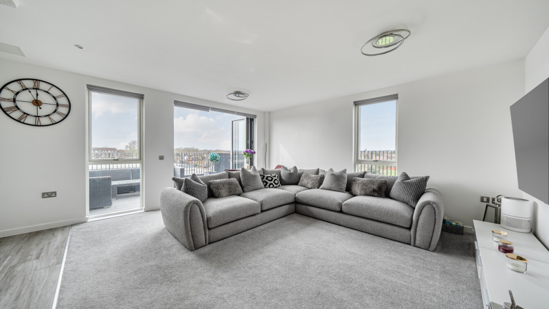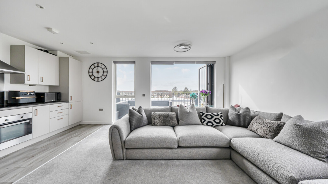Stylish two-bedroom third-floor Shared Ownership Resale apartment with balcony & parking in Feltham