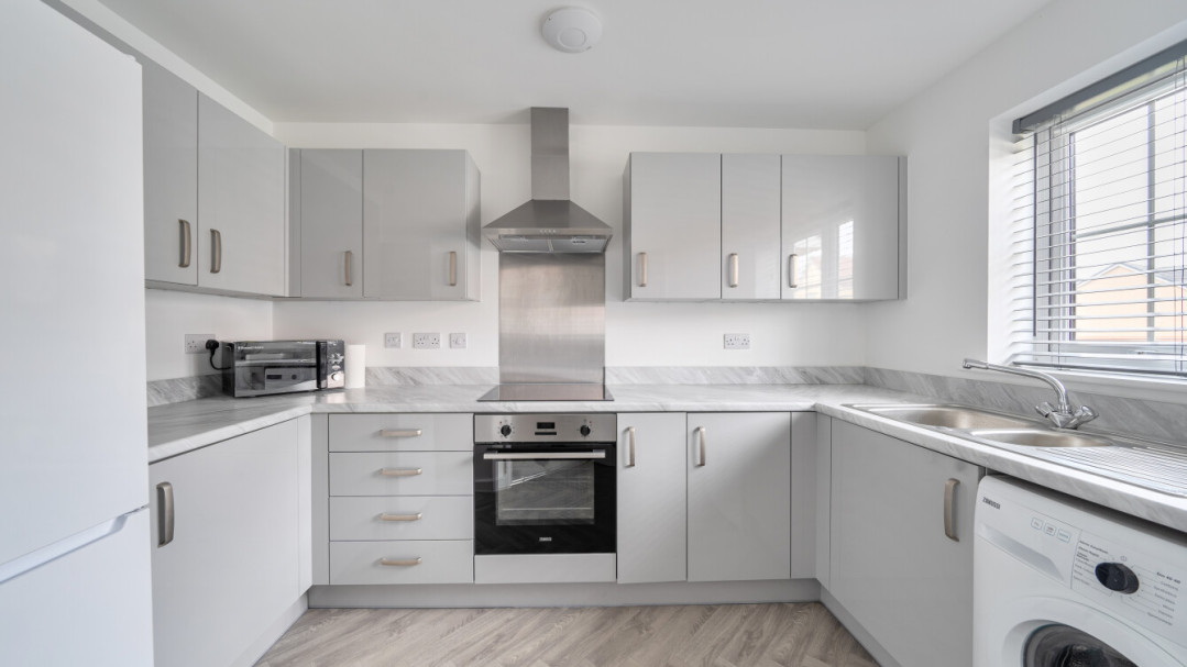 - Contemporary fitted kitchen with integrated oven, fridge freezer & washing machine