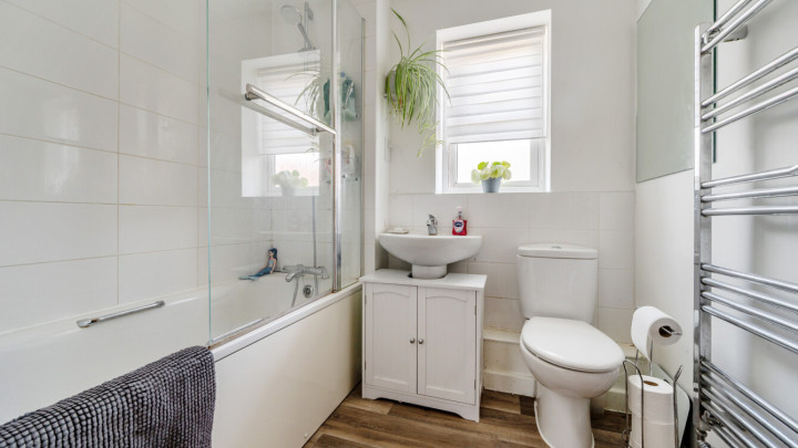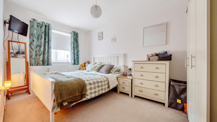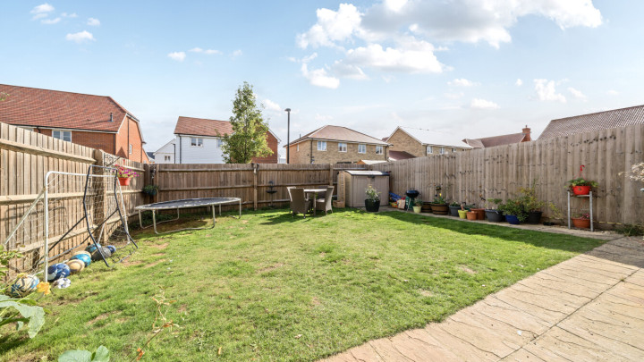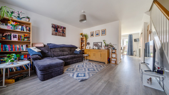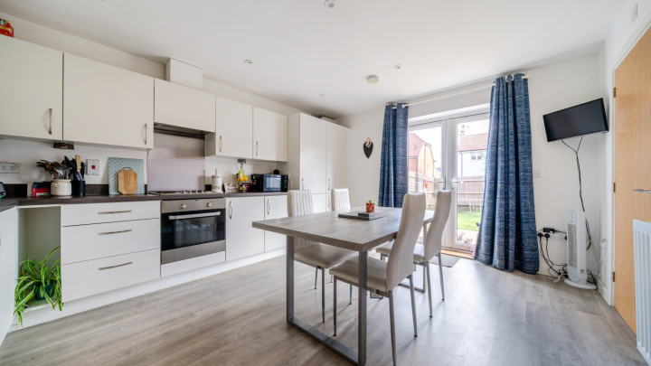 Step inside to find a welcoming entrance leading to a contemporary kitchen/diner complete with integral appliances, ideal for both family life and entertaining. A generous dining area with French doors opens directly onto the private rear garden, creating a seamless indoor-outdoor flow. The home also benefits from a modern bathroom suite with both a bath and an integral shower.