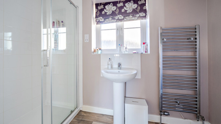 - Contemporary family bathroom with shower over bath & en-suite to master