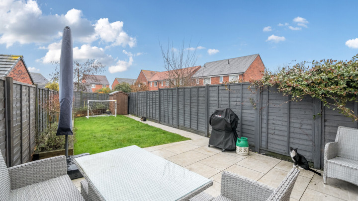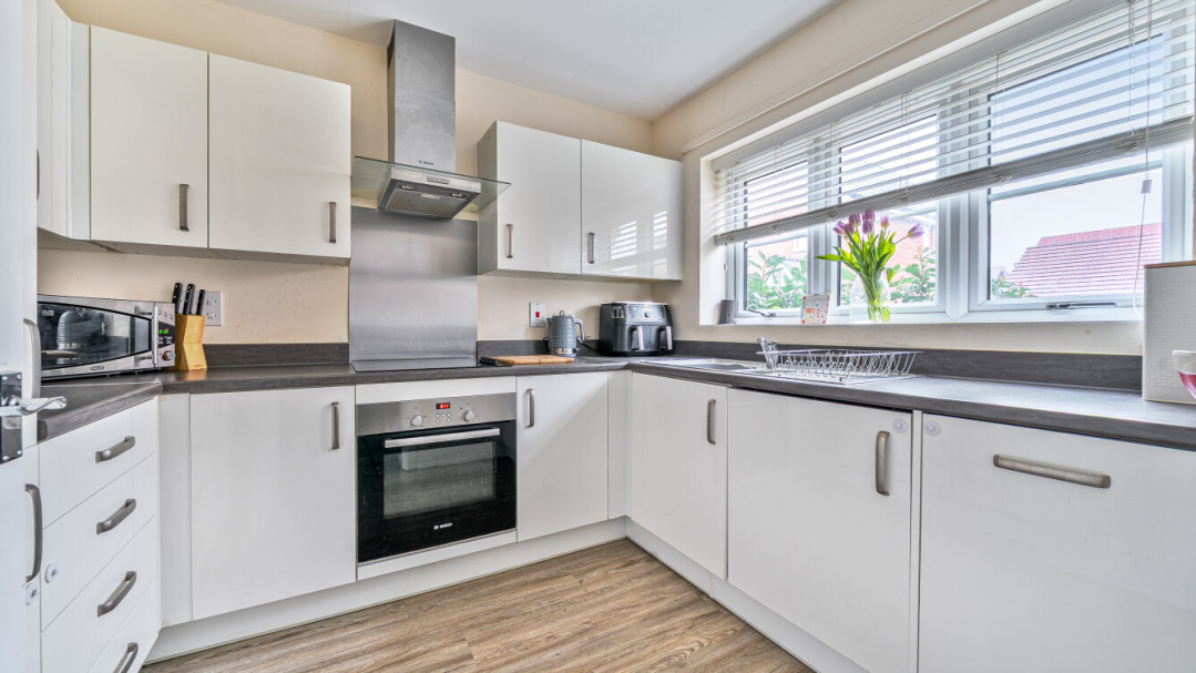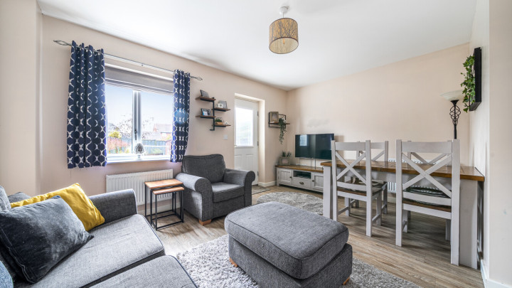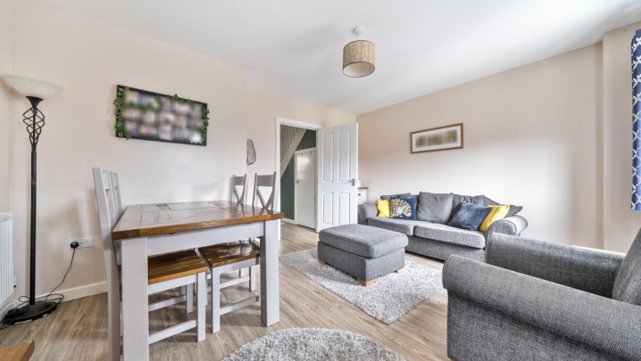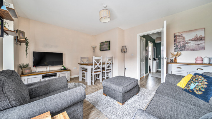 The ground floor includes a welcoming living/dining room, a well-equipped kitchen with integrated appliances including a washing machine and dishwasher, and the convenience of a downstairs WC. Upstairs, there are three good-sized bedrooms and a modern family bathroom, providing flexible accommodation for family life, guests or home working.