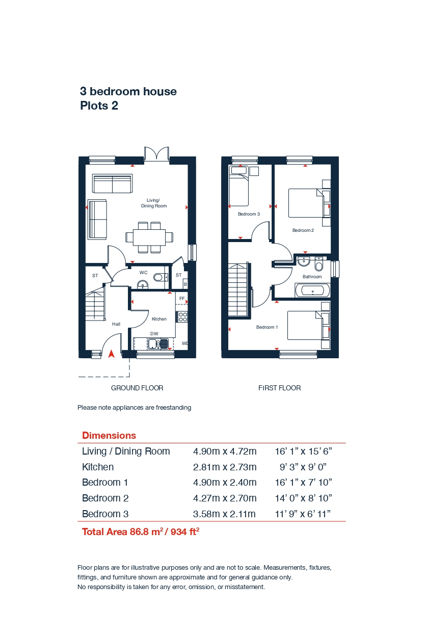 *Please be advised the Plot 2 (3-bedroom house) has freestanding appliances - fridge/freezer, oven/cooker and washing machine - these will not be integrated.
