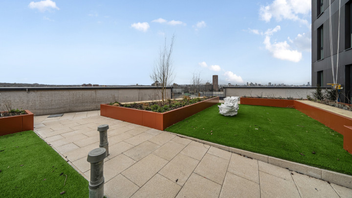 - Communal roof terrace with views of the London skyline