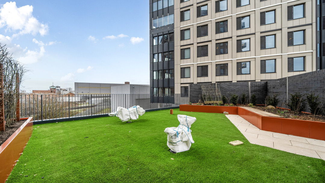 - Communal roof terrace with views of the London skyline