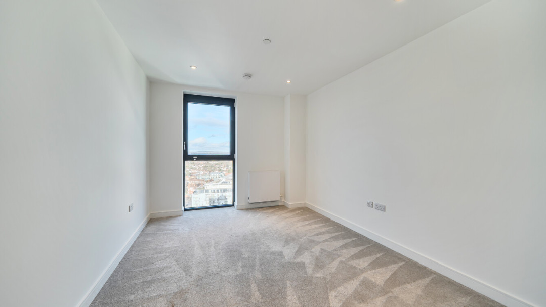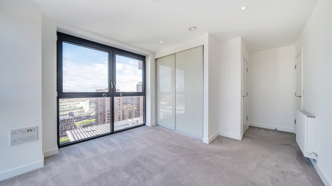 Located on the 17th floor, this impressive two bedroom apartment extends to approximately 82sqm and offers well-proportioned accommodation throughout. The principal bedroom benefits built-in wardrobe, while the second bedroom is also generously sized. The apartment features a bright and spacious open-plan living, kitchen and dining area with a contemporary fitted kitchen and floor-to-ceiling windows, allowing an abundance of natural light. Further benefits include a private balcony and a modern family bathroom with storage, shower over bath and chrome towel rail.